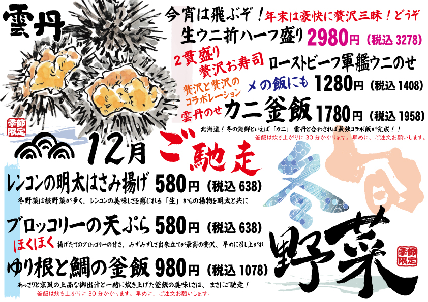 12月ご馳走年末「旬」料理!