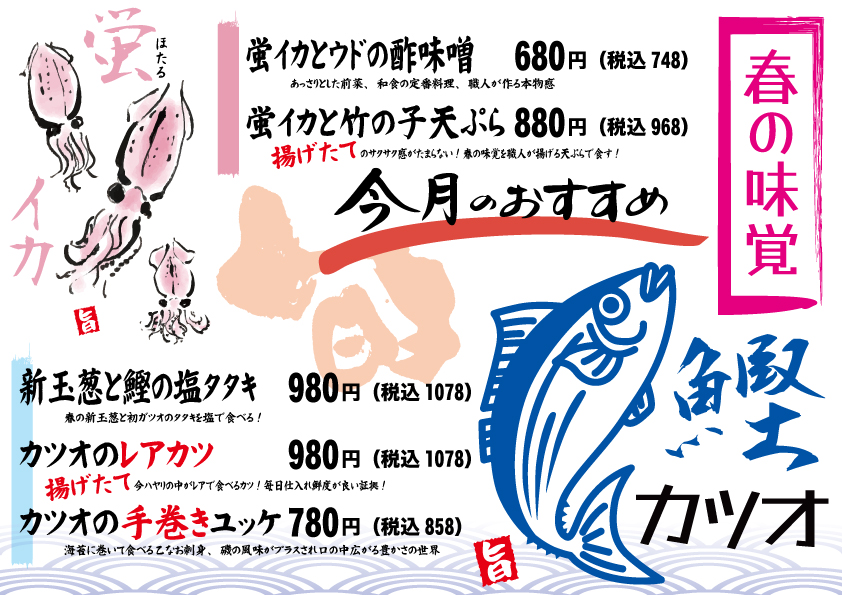 今月のフェア「もどり鰹&蛍イカ」